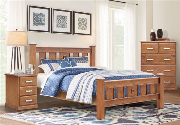Ready for a new look in your restful retreat? Go for a simply stylish display with this bedroom suite. Crafted from pine wood, it showcases a clean-lined frame with an espresso finish and high slatted headrest.